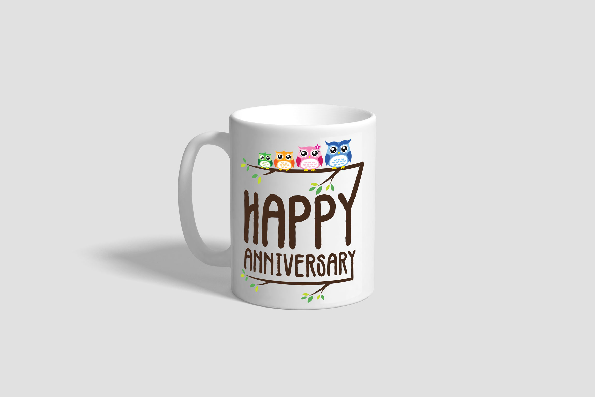 These Anniversary Mugs feature printing on both sides and it is home and office use, dishwasher safe.