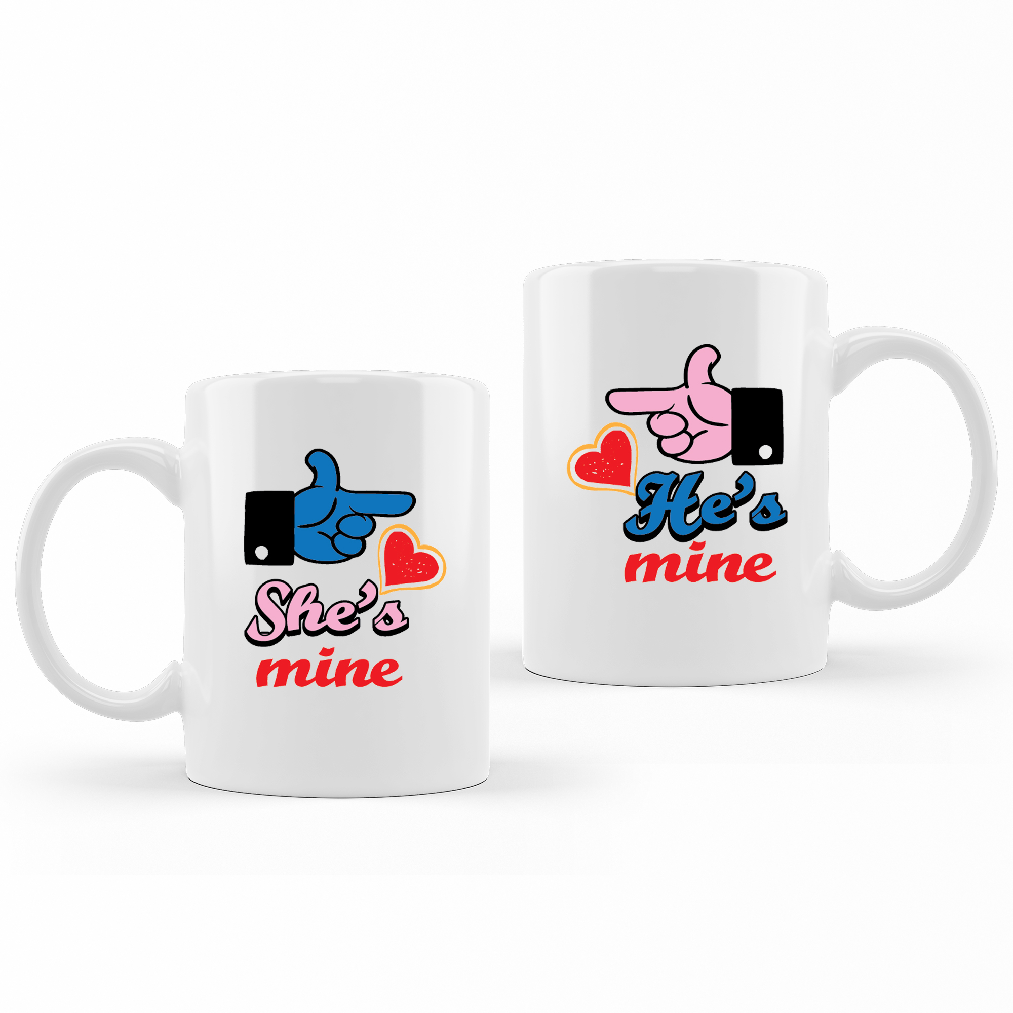 Pointing She’s & He’s Mine – Couple Mugs