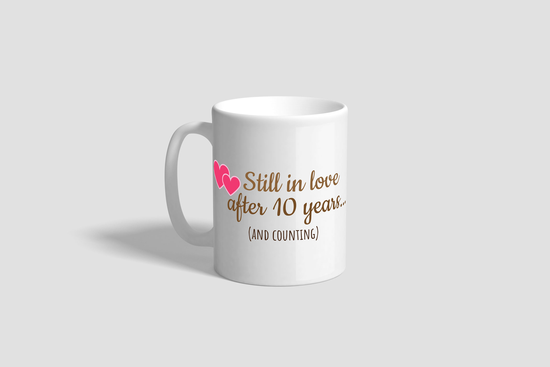 These Anniversary Mugs feature printing on both sides and it is home and office use, dishwasher safe.